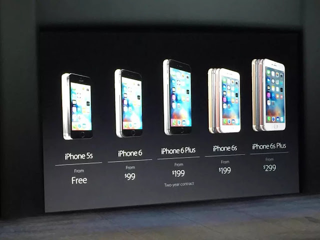 The prices run the same or less as the previous generation, but they're muddied because of the disappearing two-year contract There's a new upgrade program, $32 per month for 24 months, which allows for new iPhone every year. Preorders start September 12, available September 25 in a variety of places, including US, UK and Australia.